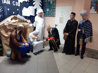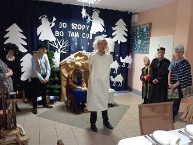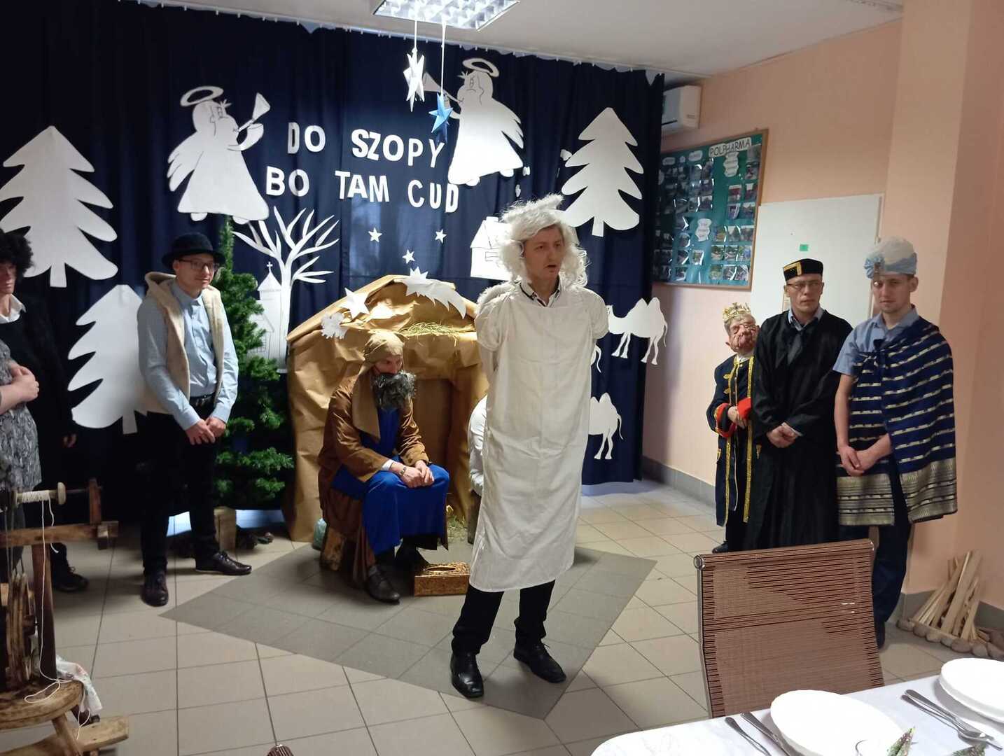 W klimacie Świąt Bożego Narodzenia przy blasku choinkowych świec 19 grudnia 2024 r. odbyło się spotkanie opłatkowe. Uroczystość rozpoczęła się przedstawieniem " Prawdziwa historia Narodzenia" w wykonaniu uczestników " domku", które wprowadziło wszystkich w świąteczny nastrój. Uroczystość uświetnili swoją obecnością zaproszeni goście: Zastępca Burmistrza Zbigniew Szcześniak, Ks. Proboszcz Bogdan Zatorski, Lek. Janina Jagielska-Zakonnik, Dyrektor Mgops Magdalena Kieszek, którzy z uwagą i podziwem oglądali występ uczestników. Po części artystycznej dyrektor ŚDS Anna Szymańska podziękowała artystom za przygotowanie przedstawienia, złożyła wszystkim życzenia z okazji Świąt Bożego Narodzenia. Na zakończenie wszyscy obecni podzielili się opłatkiem, składając sobie życzenia. Spotkanie było nie tylko okazją do świętowania, ale także do refleksji nad tym, co w życiu najważniejsze.