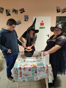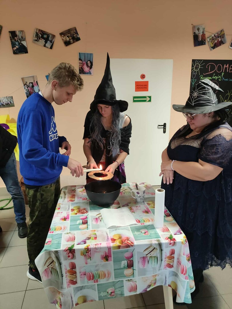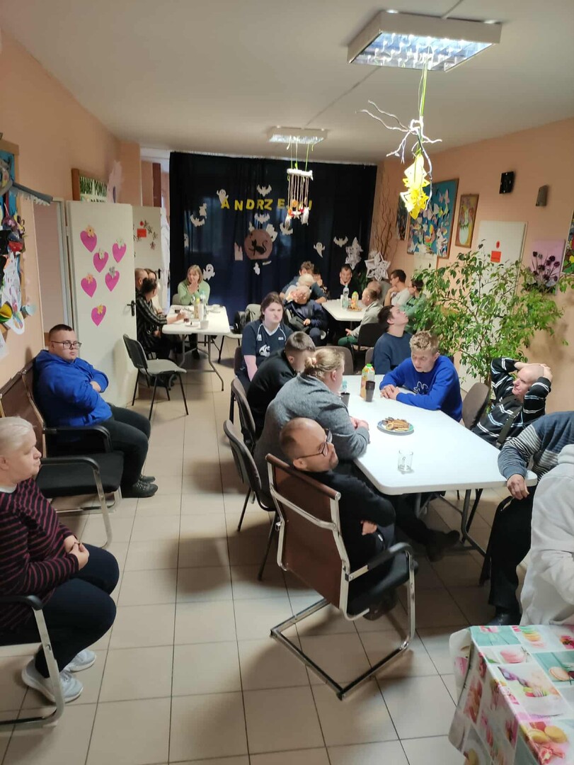 Dziś mieliśmy ogromną przyjemność gościć uczniów Szkoły Przysposabiającej do Pracy z Rawy Mazowieckiej 🤝✨. Nasi uczestnicy z wielkim zaangażowaniem oprowadzili gości po placówce 🏫, pokazując jej najciekawsze zakątki i codzienne aktywności. Po wspólnym zwiedzaniu wszyscy przenieśli się do „magicznego świata Andrzejek” 🔮⭐. Czekały tam na nich różnorodne wróżby, a największym zainteresowaniem cieszyło się lanie wosku przez klucz 🕯🗝. Powstające kształty wywoływały dużo śmiechu, radości i kreatywnych interpretacji 😄💭. Serdecznie dziękujemy za dzisiejszą wizytę — było nam ogromnie miło gościć Was w naszej placówce 🤝💛!